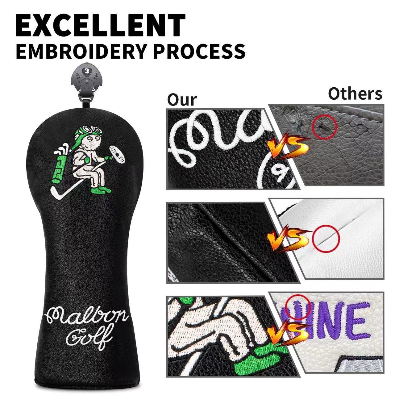 Malbon Golf Club Headcovers Driver Fairway Woods Hybrid Putter Head Covers #2640