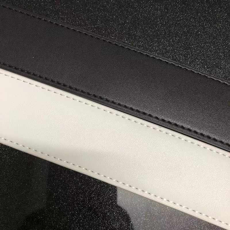 Metal buckle. The end has a LOGO embossed design.